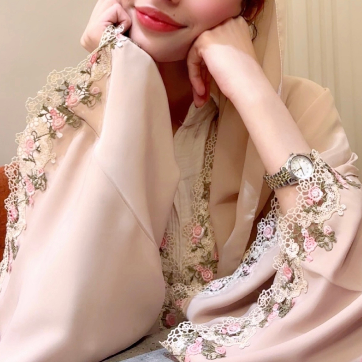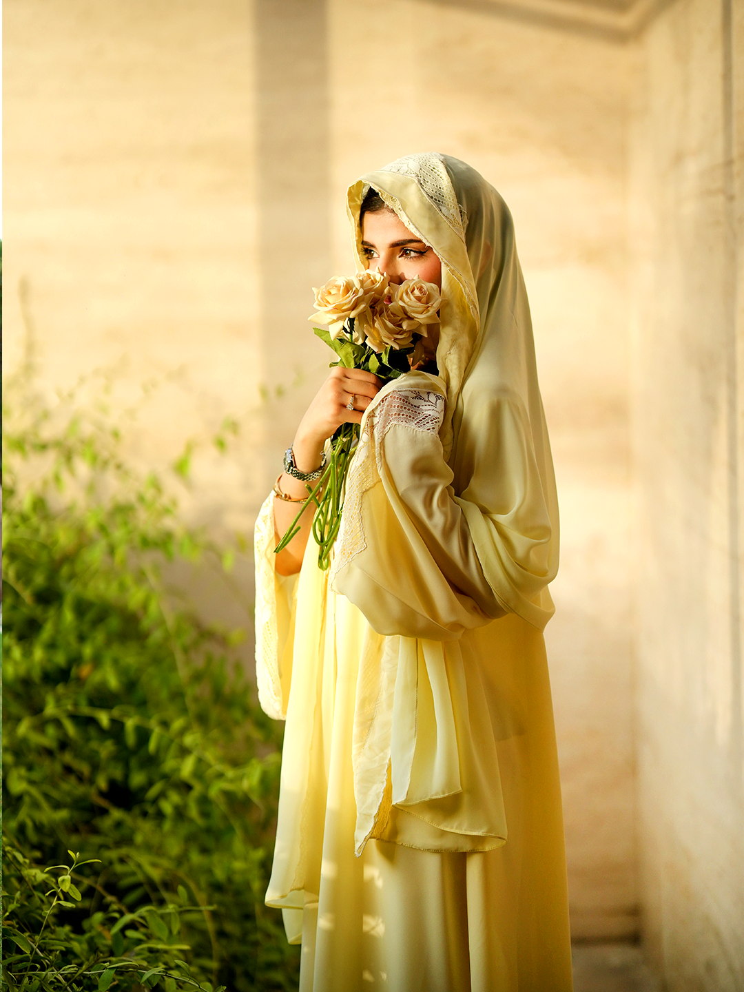 Golden Glow Elegance – J’Nour Champagne Abaya with Metallic Sheen