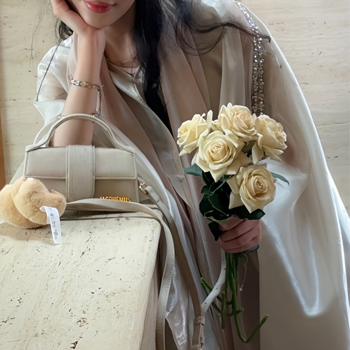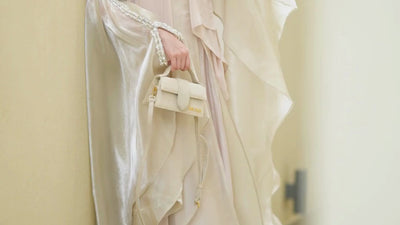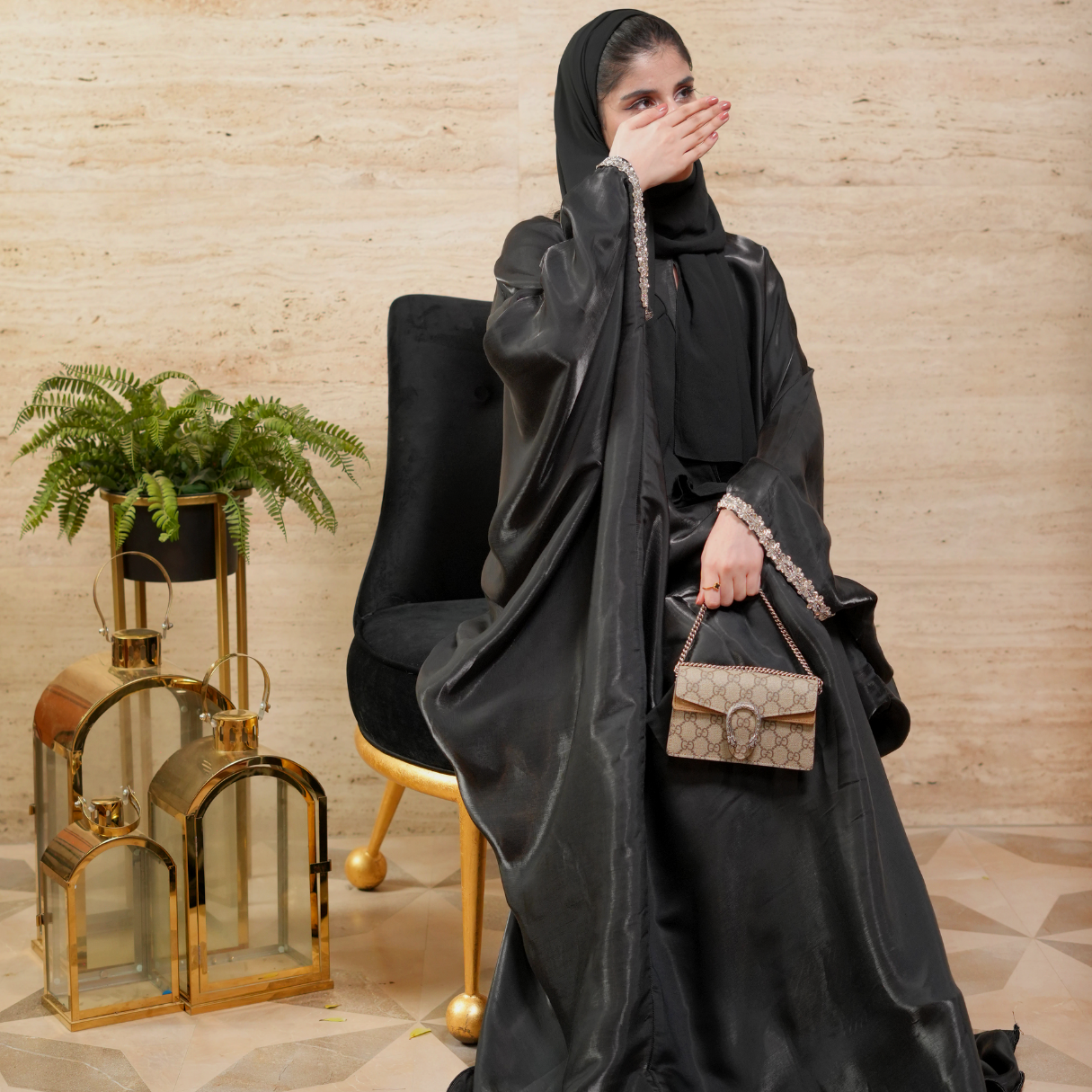 Golden Glow Elegance – J’Nour Champagne Abaya with Metallic Sheen